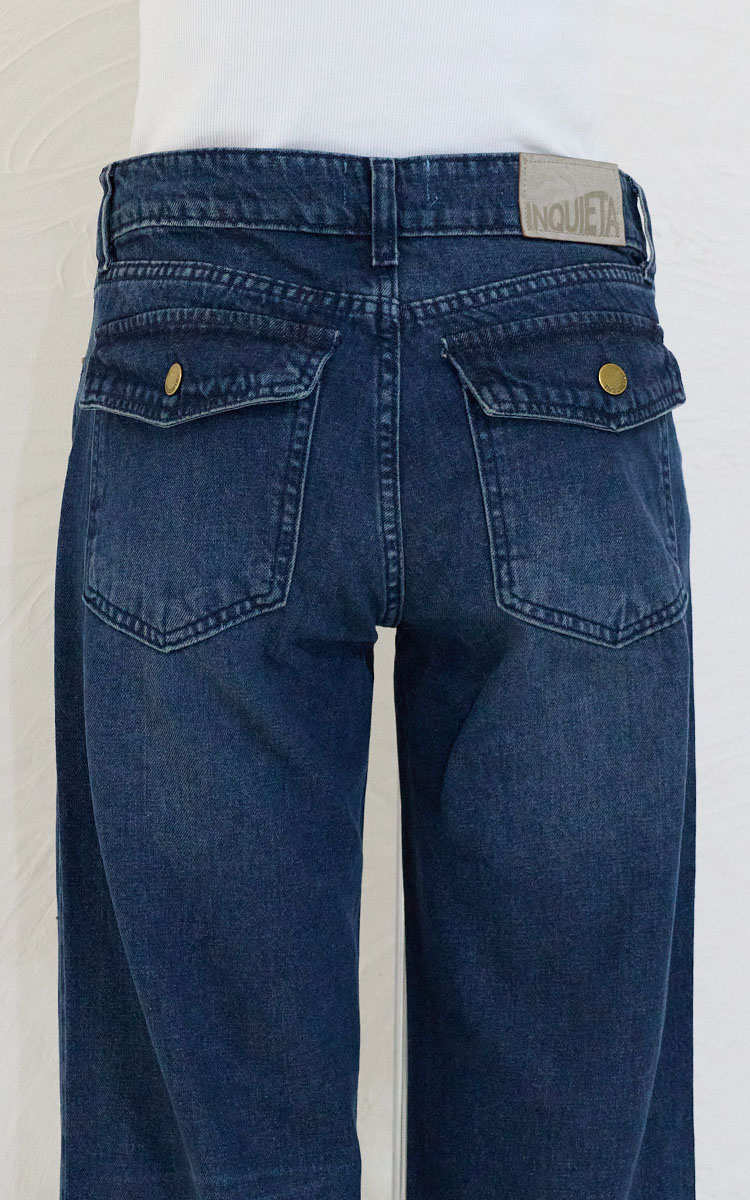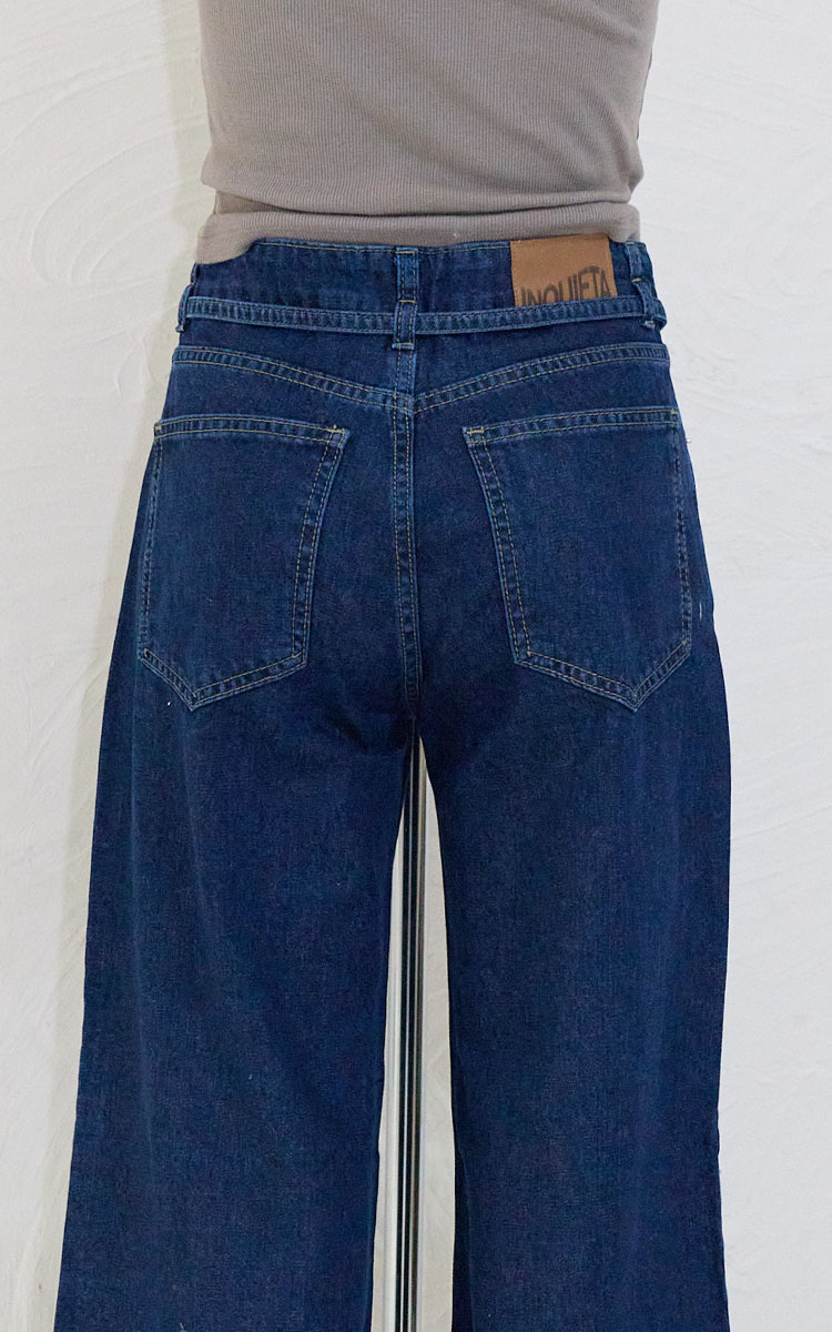 Los jeans wide leg de Inquieta Denim se destacan por su corte amplio desde la cadera hasta el ruedo, creando un look moderno y cómodo. Este estilo ofrece una silueta relajada y versátil que combina fácilmente con distintos outfits.