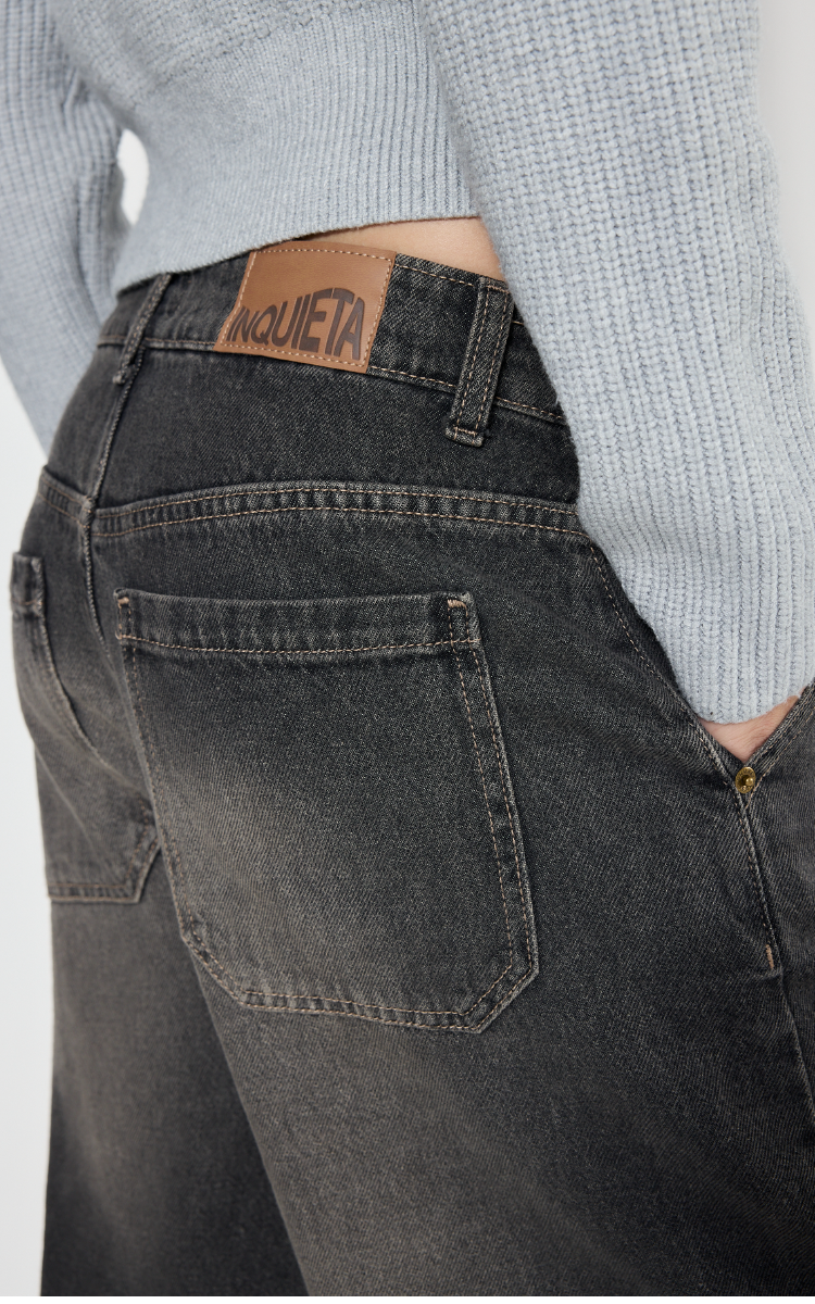 Jean baggy de tiro medio en denim 100% algodón. Diseño holgado con piernas anchas. Bolsillos plastrón en la espalda.