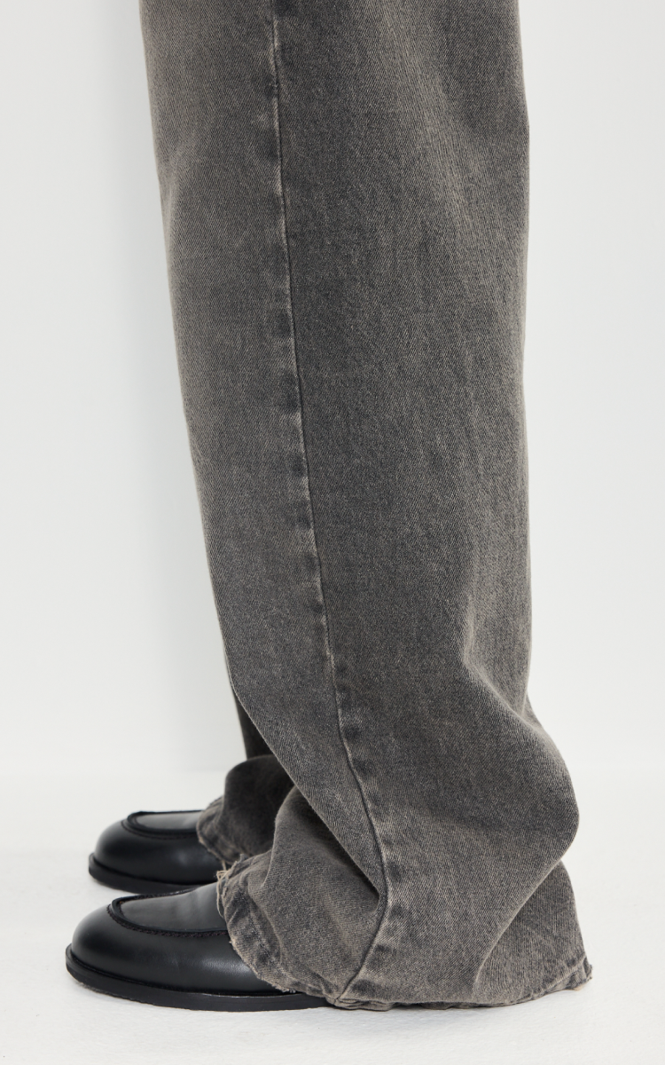 Jean baggy gris en denim 100% algodón, tiro bajo y caído. Calce holgado. 5 bolsillos.