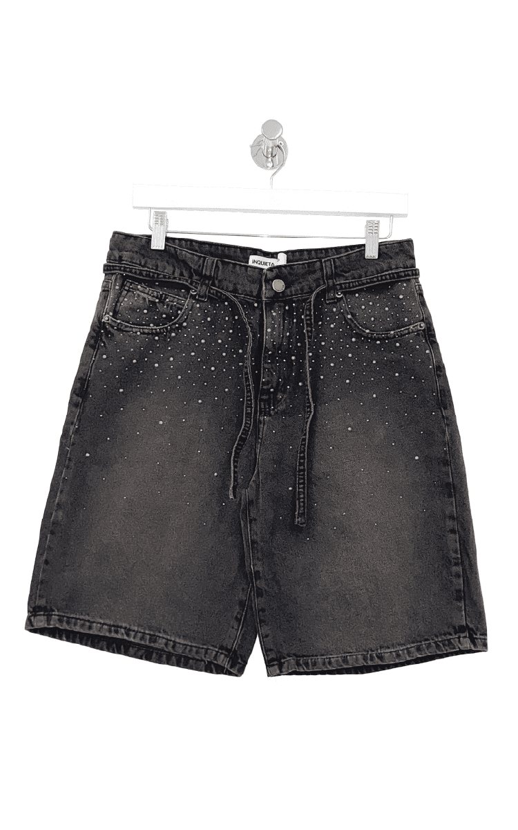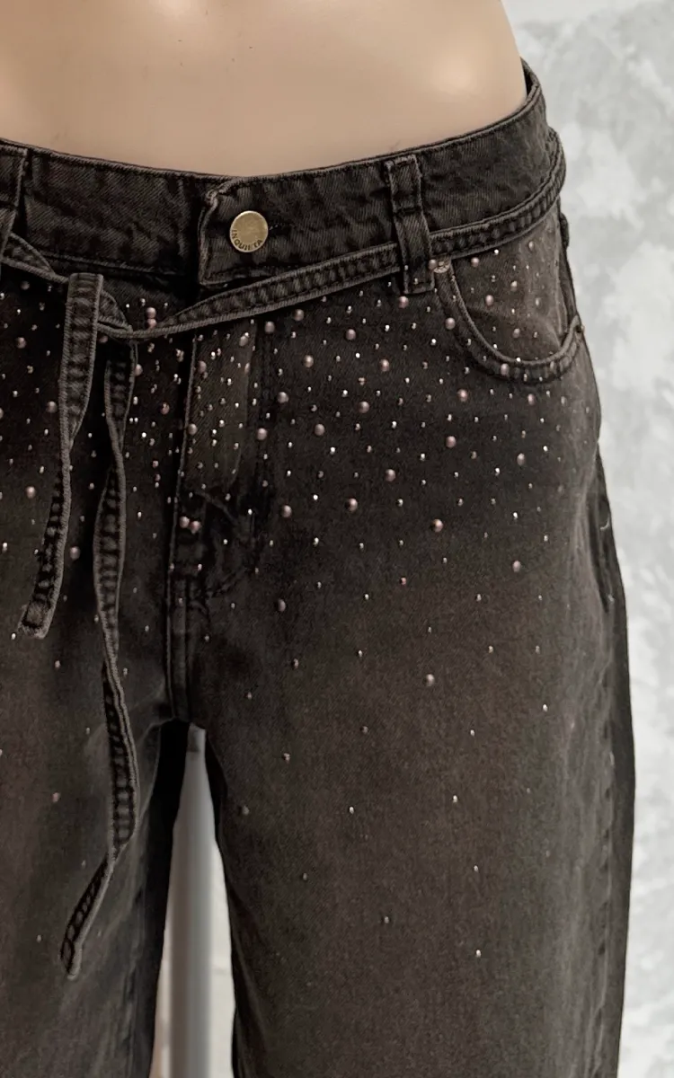 Bermuda clásica tiro medio con detalle de hotfix en el frente. Denim rígido. Diseñado para que puedan usar con ruedo doblado según su gusto con detalle de lazos.