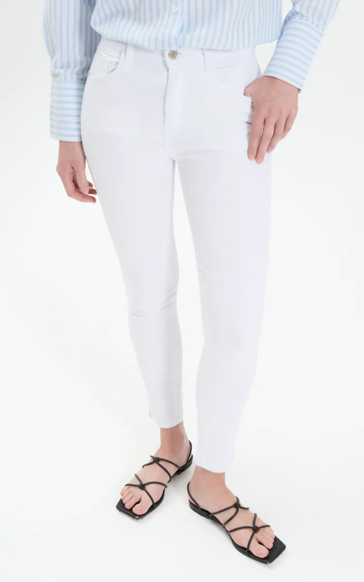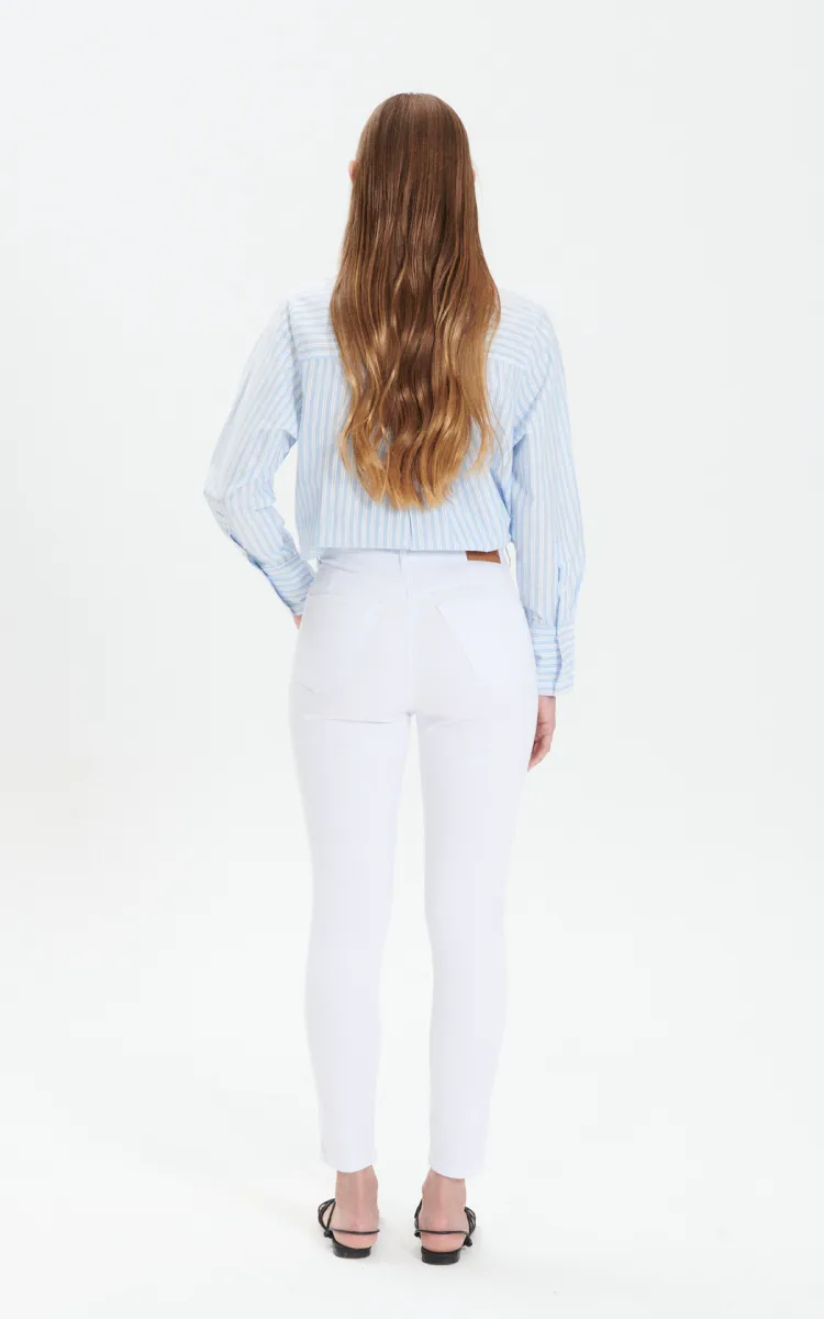 Jean chupín súper elastizado blanco. Tiro alto. 5 bolsillos.