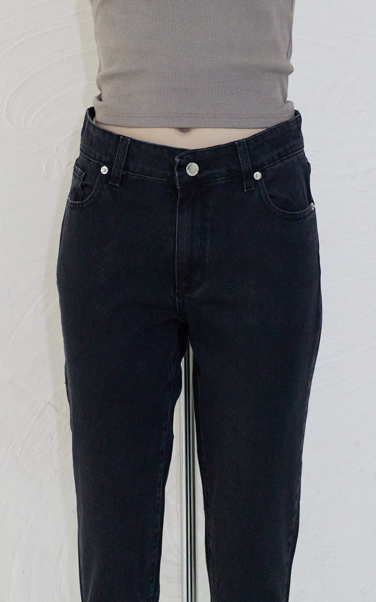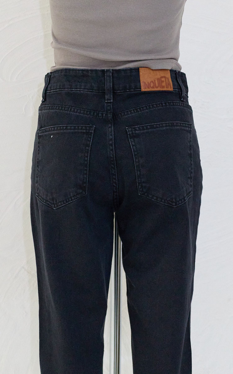 Jean mom denim rígido. Tiro alto. 5 bolsillos.
