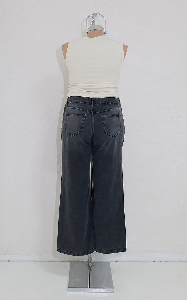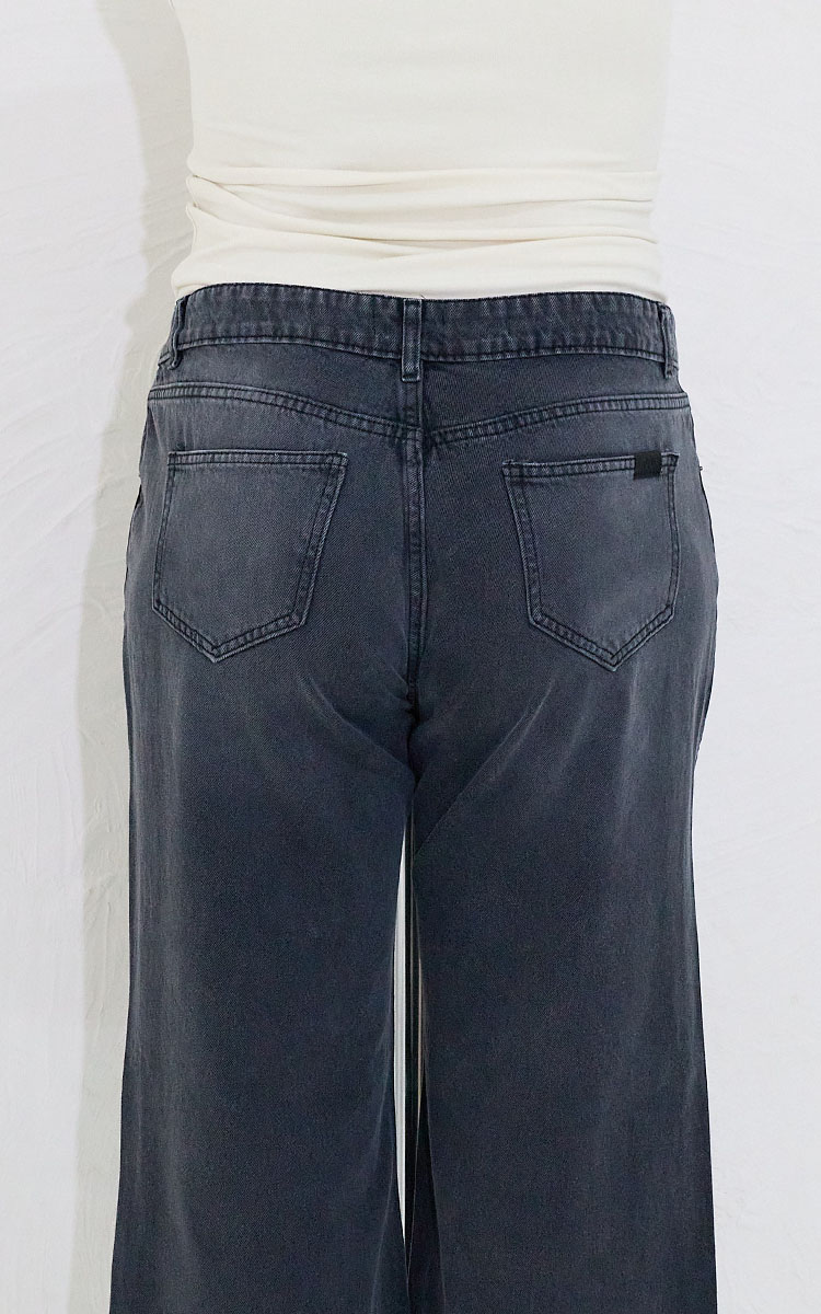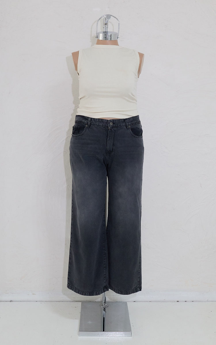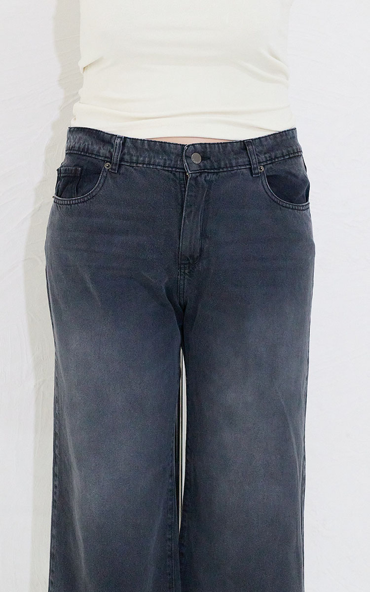 Plus size wide, tiro medio, en denim rígido. Diseño clásico 5 bolsillos.