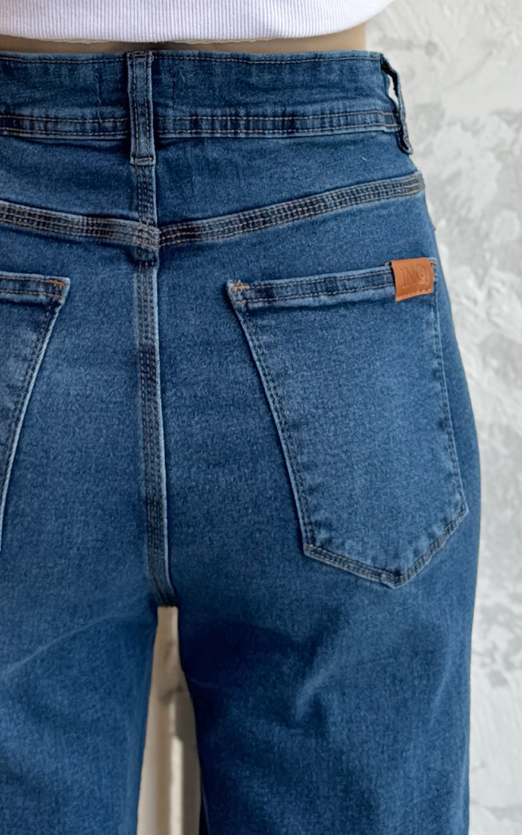 Jean plus size wide leg, elastizado. Tiro alto y diseño clásico 5 bolsillos.