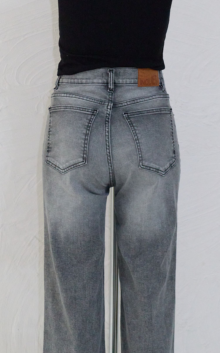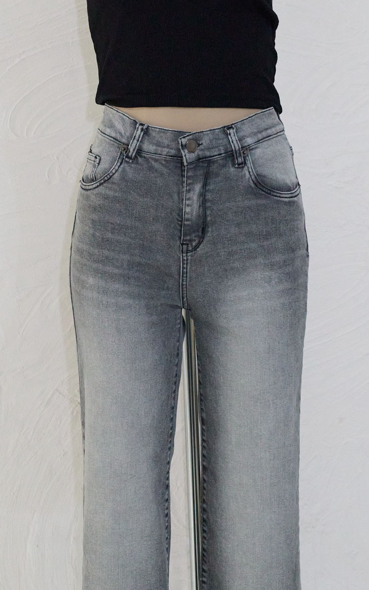 Jean recto tiro alto en tela comfort elastizada. Calce cómodo que se adapta al cuerpo. Diseño clásico de 5 bolsillos.