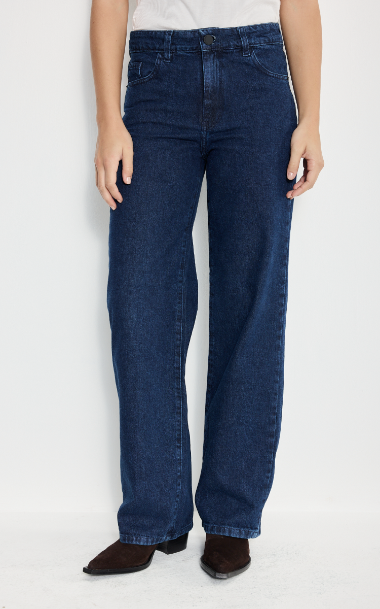 Recto tiro medio. Azul marino. Diseño de 5 bolsillos.