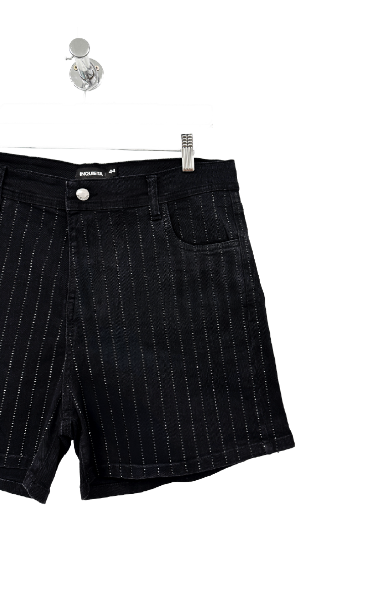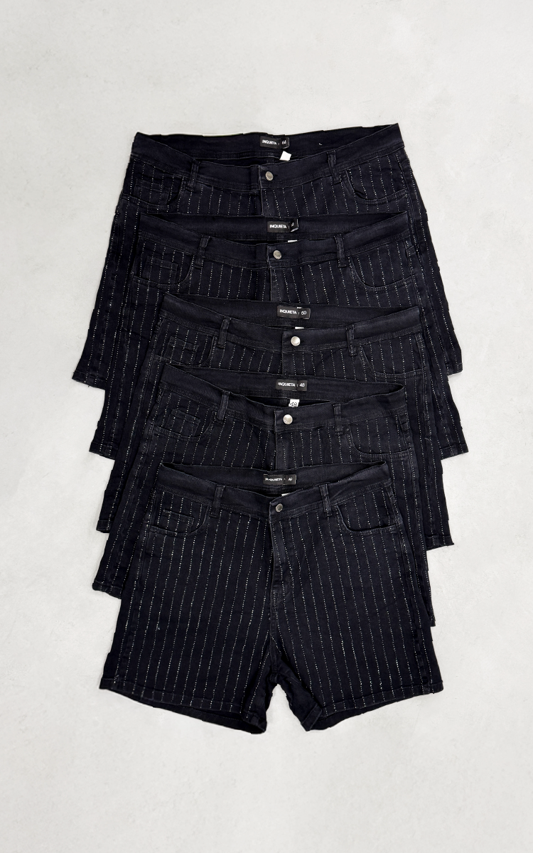 Short Plus size elastizado negro. Tiro alto . Con brillos Hot fix en toda la delantera.