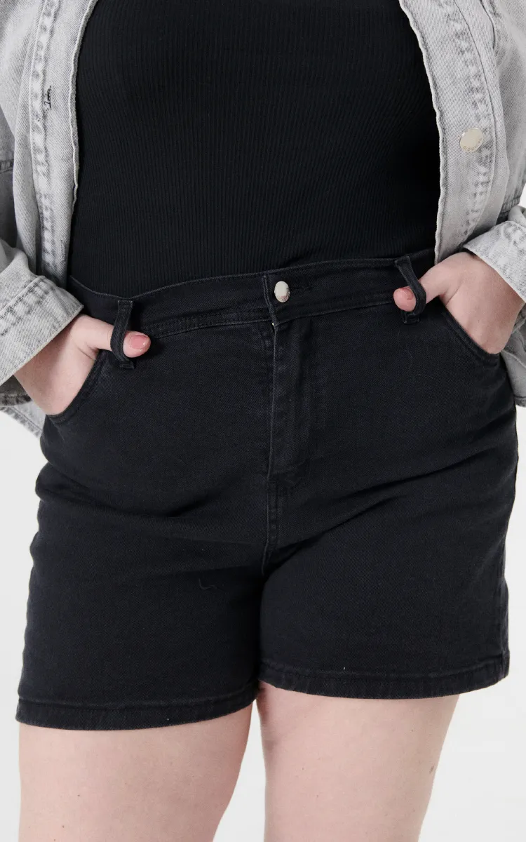 Short plus size elastizado negro. Tiro alto. 5 bolsillos.