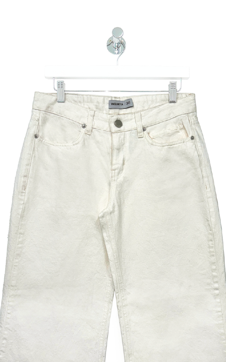 Jean wide flare tiro bajo en denim rígido. Diseño clásico 5 bolsillos.